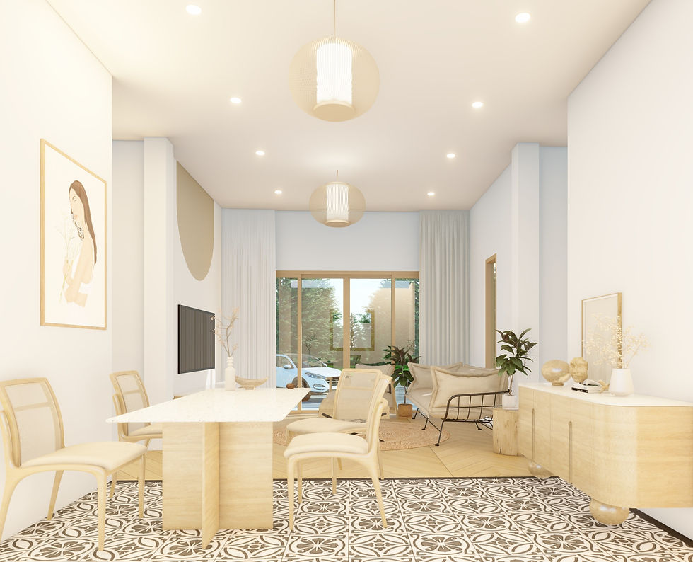 สีโทนนี้ช่วยสะท้อนแสงธรรมชาติ ทำให้บ้านดูสว่างโดยไม่แสบตา เหมาะกับการอยู่อาศัยจริงในชีวิตประจำวัน